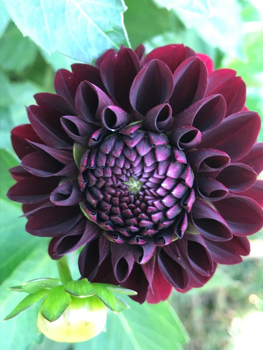 Photo by CDS member Cindy Edelbrock. Cindy says, "Dark as a moonless night, this deep red—almost black—bloom will make your heart hop on a carpet and fly to faraway lands." One of the darkest of all dahlias, Arabian Night has been a cutting garden favorite for more than 60 years. The dusky, burgundy-maroon petals give it a sultry beauty that adds depth and drama to every bouquet. Profuse and showy, an award-winning dahlia.
