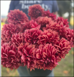 Bloomquist York is a 6" informal decorative dahlia with truly unique rusty-red ombre petals. York has such an incredibly rich color, with a deep chocolate center that makes it look hand-painted.