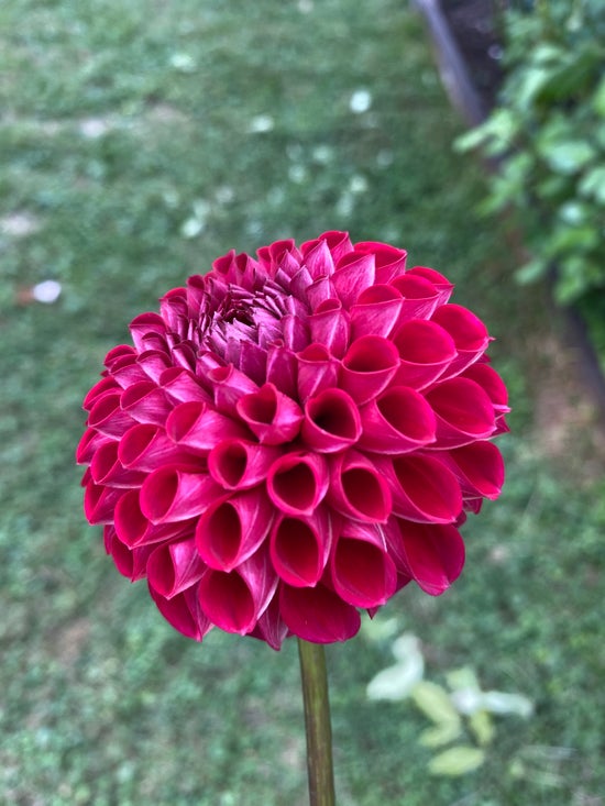 Photos by CDS members Allison Feucht, Beth Warmuth, and Cindy Edelbrock. Beth says, "This is a hardy dahlia with compact beautiful flowers!" And Cindy says, "A dark chocolatey cherry red color, this pretty pompom bloom looks good enough to eat." Impressive deep rich red dahlia that has perfectly symmetrical shaped petals and a delightful fiery hue. This small ball-shaped variety is a scarlet red with a slightly darker red center.