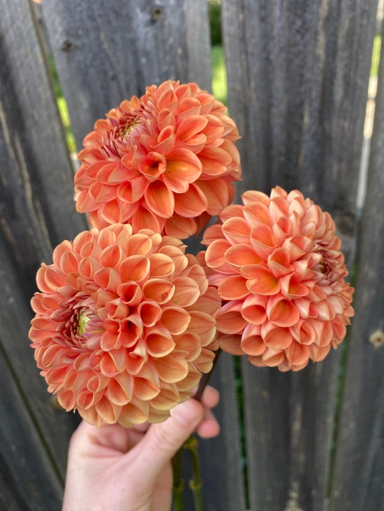 Photos by CDS members Allison Feucht and Heather Barron. Heather says, "Gorgeous bronze orange ball." A cute, coppery orange dahlia. Slightly iridescent. You'll be reaching for this autumnal color.