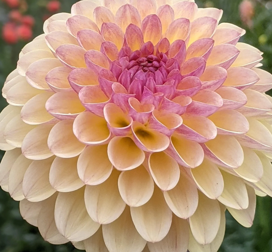 Coseytown Flowers says, "Meet Coseytown Gale! She is a warm yellow that has a filtered raspberry under petal that sometimes creates a stunning blush hue. Stong, upright stems with a firm blossom attachment. Produces plentiful, smaller compact tubers that are a breeze to divide and hold extremely well in storage." Photo by Coseytown Flowers.
