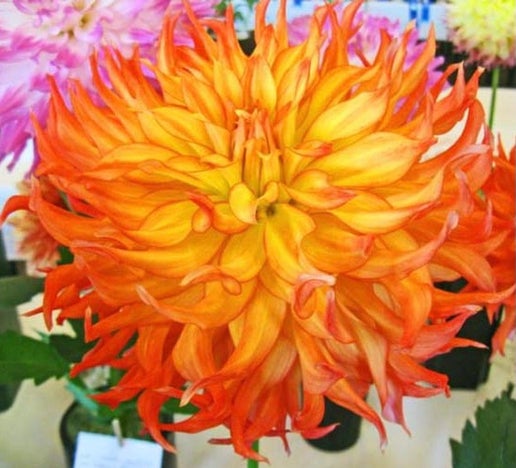 Vivid orange blooms with bright yellow towards the center of the petal. Bright orange flame color that really gets attention. Flowers are good for cutting. Orange and yellow blend is a standout in the garden. Showy!