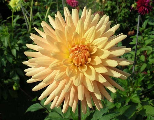 Peachy gold in color, cactus form. Early bloomer with masses of golden bronze flowers.