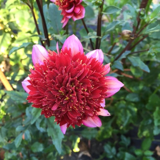 This dahlia just makes me want to move. This eye-catching novelty has fuzzy, cherry-red centers encircled by glowing orange petals. While its 3-inch blooms look quite delicate, they are surprisingly weather resistant, very productive, and make a wonderful accent in arrangements.