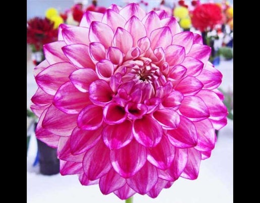 This purple and white variegated blooms is a fun addition to the dahlia field! A cheerful purple and white "checkered" ball dahlia that lends a delightful whimsy to any bouquet.