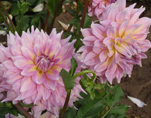 Luscious blend of pink and creamy yellow. Huge 10" blooms are cream-blended with pink.