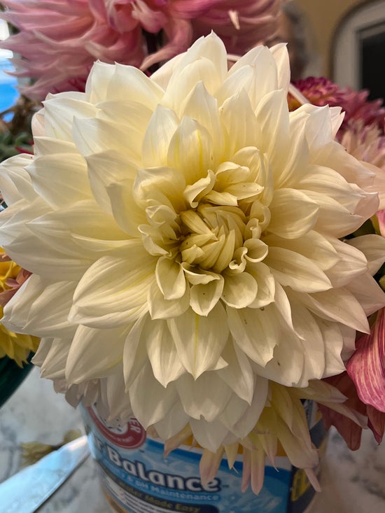 The moon. Gorgeous 10" blooms of very soft yellow. Late bloomer.
