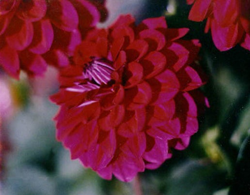 A deep cherry red with purple undertone, this ball dahlia is a great producer all season long. Stems are long, strong and straight. Plant grows tall and upright to four feet in height.