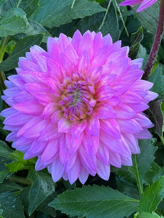 Photo by CDS member Kathleen Carroll. "Blooms like crazy! Neon color." "My, my, Delilah." This pink dahlia is as alluring and captivating as Delilah in the song! Bright pink petals blending to white near the center of the blooms. This dahlia was originally classified as an informal decorative, but it has since been reclassified as a water lily. The 6″ blooms are very full. Stunning addition to any garden. Introduced in 2002, it's popular because it produces large flowers that are 6–8 inches in diameter. The plants are about 4' tall and produce numerous flowers with long stems. Popular in arrangements.