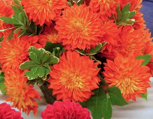 2021 Challenge Flower. Come on, folks! Put on your sunglasses! A beautiful bright and cheerful shade of sun-kissed orange blooms on a 4′ plant. Join us in growing the 2021 Challenge Flower. Stunning neon orange 6-8" blooms on a 4' bush. Flame orange. Introduced in 1987. A vibrant orange with a pale orange in the center. Bloom time is early (75 days).