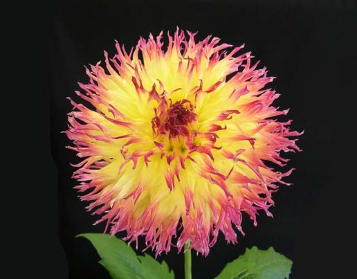 With its fuchsia-red pink petals and striking yellow center, this dahlia commands attention. Its huge 6 to 8-inch blooms are laciniated in shape, adding to its dramatic flair. As a fluffy cut flower, it brings an extra touch of drama to any arrangement.