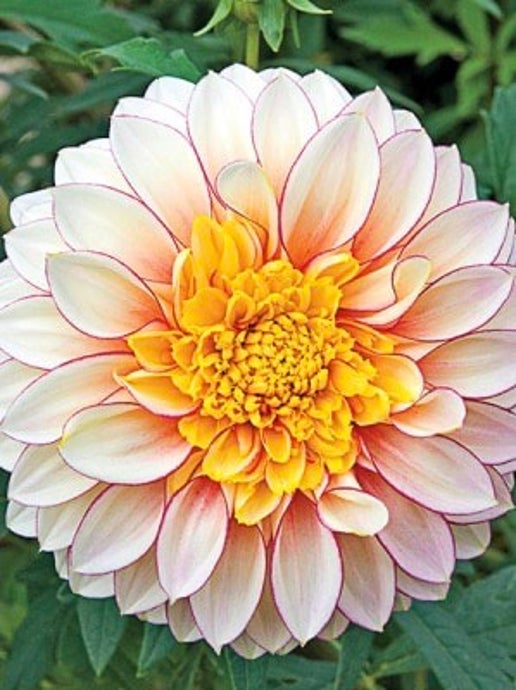 An adorable 5" bloom with yellow center and white petals outlined with a coral-red. Beautiful in a border or bouquet. Exotic-looking bicolour flower.