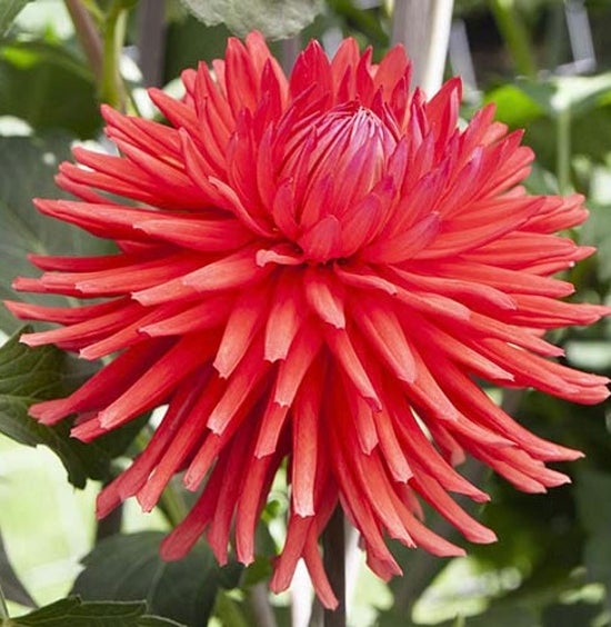 Standing at an impressive 5' tall, this dahlia variety showcases vibrant reddish-orange blooms measuring 4.5" in diameter, all held on dark stems. With its cactus form and neon red color, it truly lives up to its name, making a bold statement in any garden. Introduced in 2022. Tall and gorgeous dahlia in constant bloom from mid-summer. Adds a burst of color and vibrancy to the landscape.