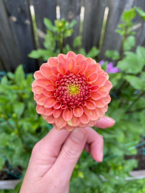 Photo by CDS member Allison Feucht. A warm tangerine color with lovely gold tips on each petal. A sweet and small ball flower in a really pleasing soft orange color, a great color for fall and for events.