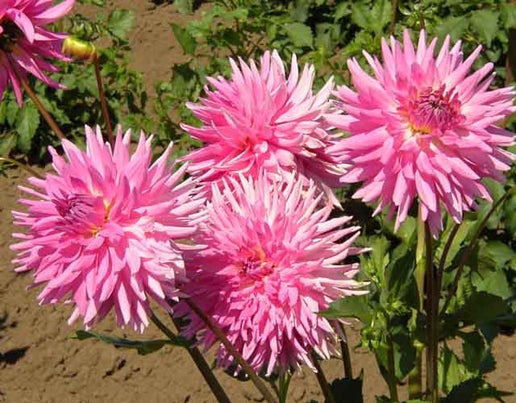 These dahlias are the stuff sweet dreams are made of. Their 6" bright pink blooms are held at a 45-degree angle on strong, well-proportioned stems. With their prolific blooming habit, they produce an abundance of flowers, adding a touch of beauty and charm to any garden or floral arrangement.