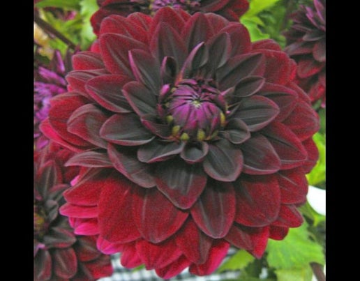 Small deep red, almost black blooms. Another addition to the ever popular black dahlias. Very much admired at fall festivals. This black-red bloom seems to glow in arrangements.